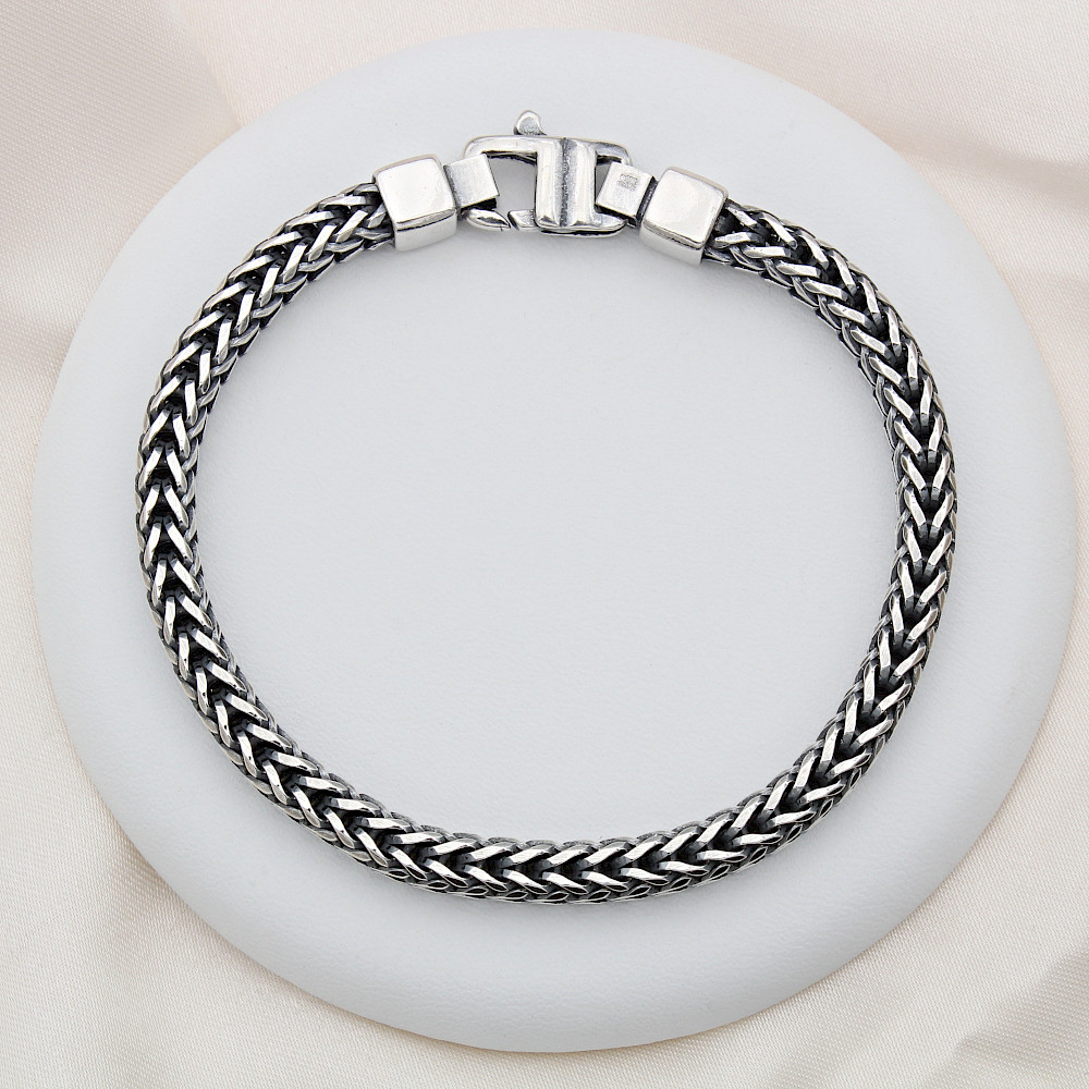 Elevate your style with this sterling silver woven chain bracelet. Featuring an intricately braided design, this bracelet combines durability with a sleek, timeless aesthetic. The oxidized finish enhances the depth of the weave, creating a striking contrast that adds character to any outfit.