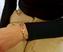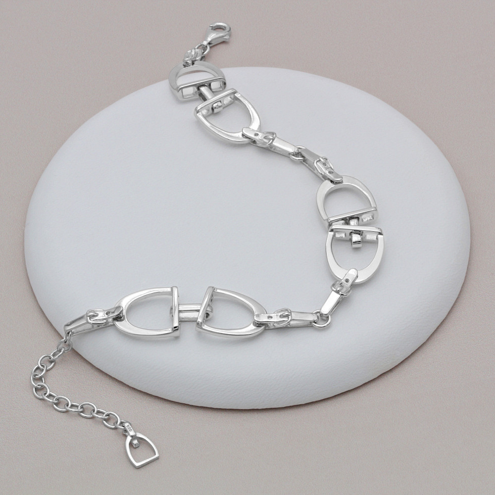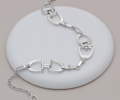 A neatly made stirrup and buckle bracelet. This beautiful piece sits lovely on the wrist and is sure to be a hit with all equestrian enthusiasts.