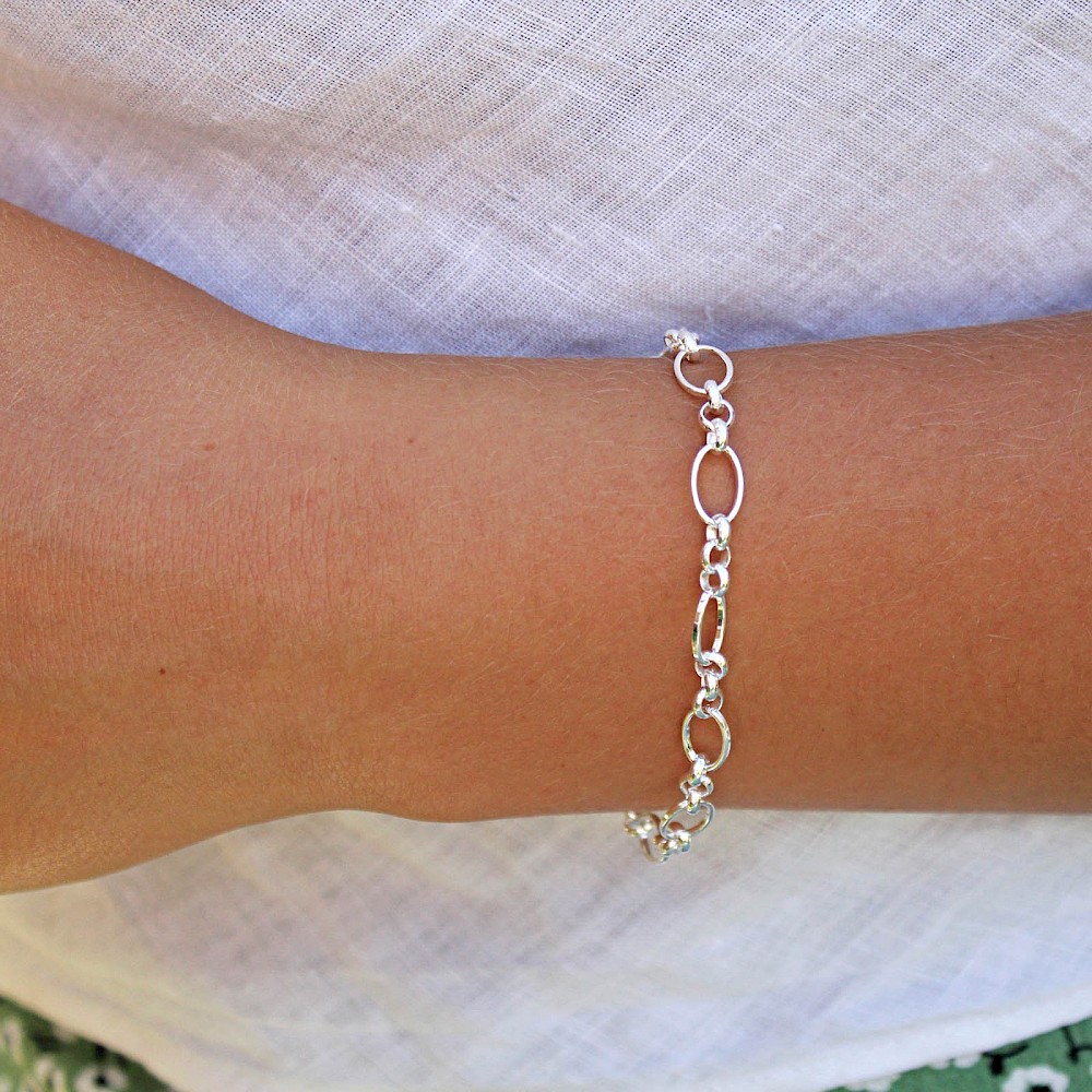 Effectively designed link bracelet. Crafted in Sterling Silver this delightful little bracelet makes a perfect gift for a close friend or loved one.