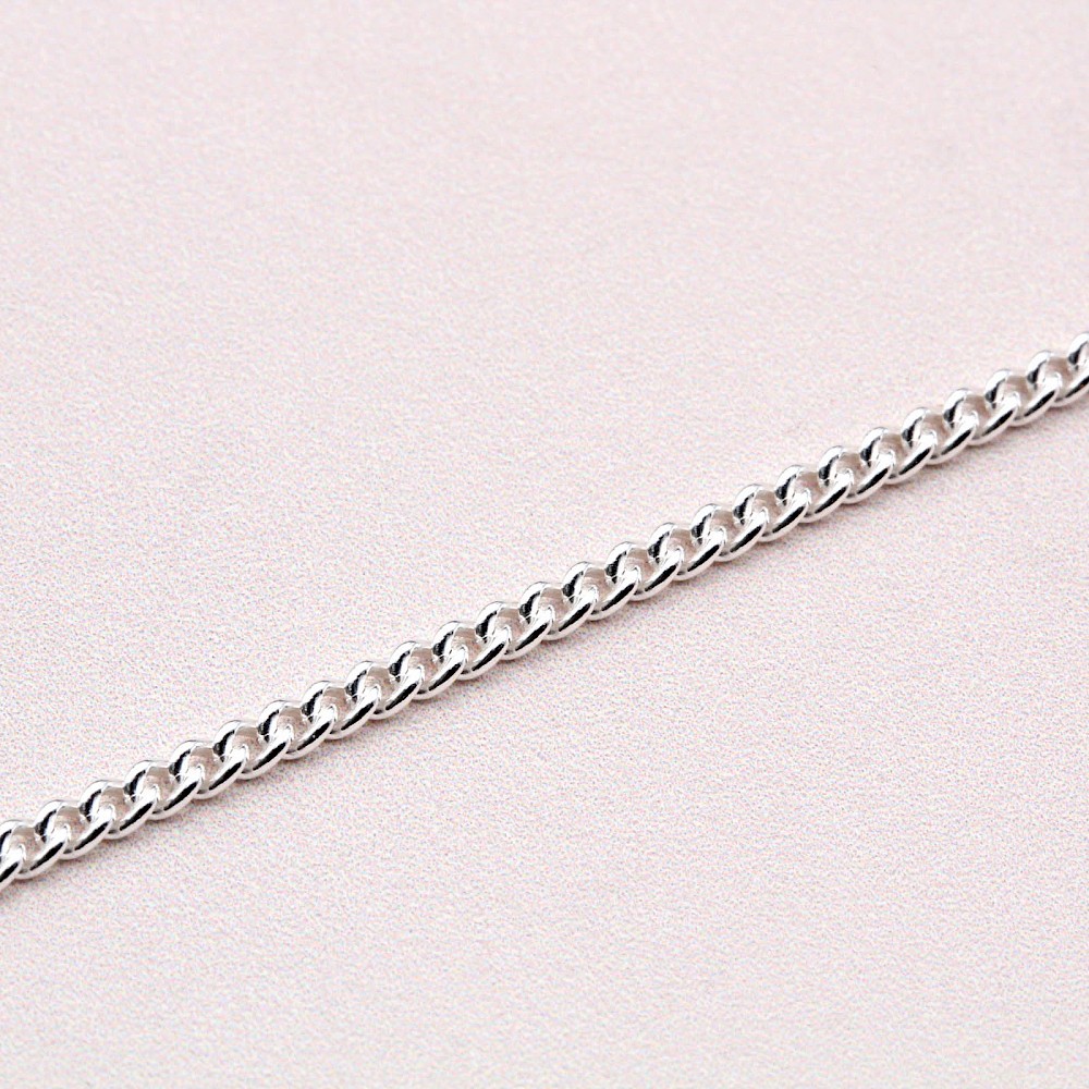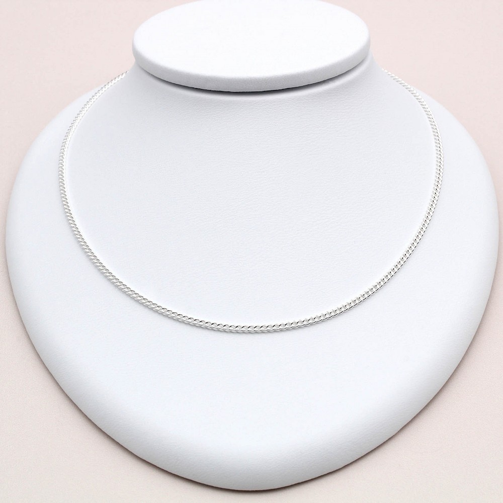 16”/ 41cm Medium weight close link Sterling Silver curb chain. A smooth sturdy chain making this ideal for a small heavy pendant.