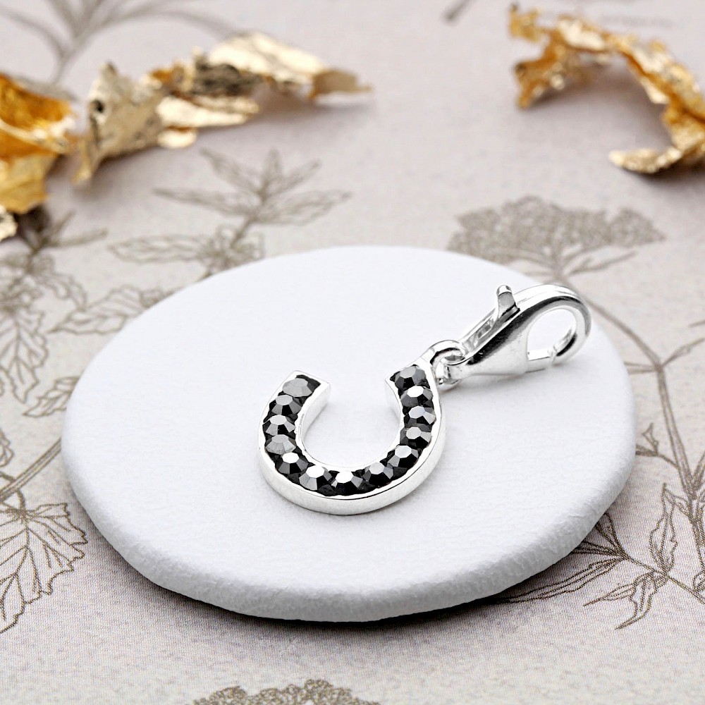 This dainty Sterling Silver and cubic zirconia hook on charm could be the one to bring you luck.