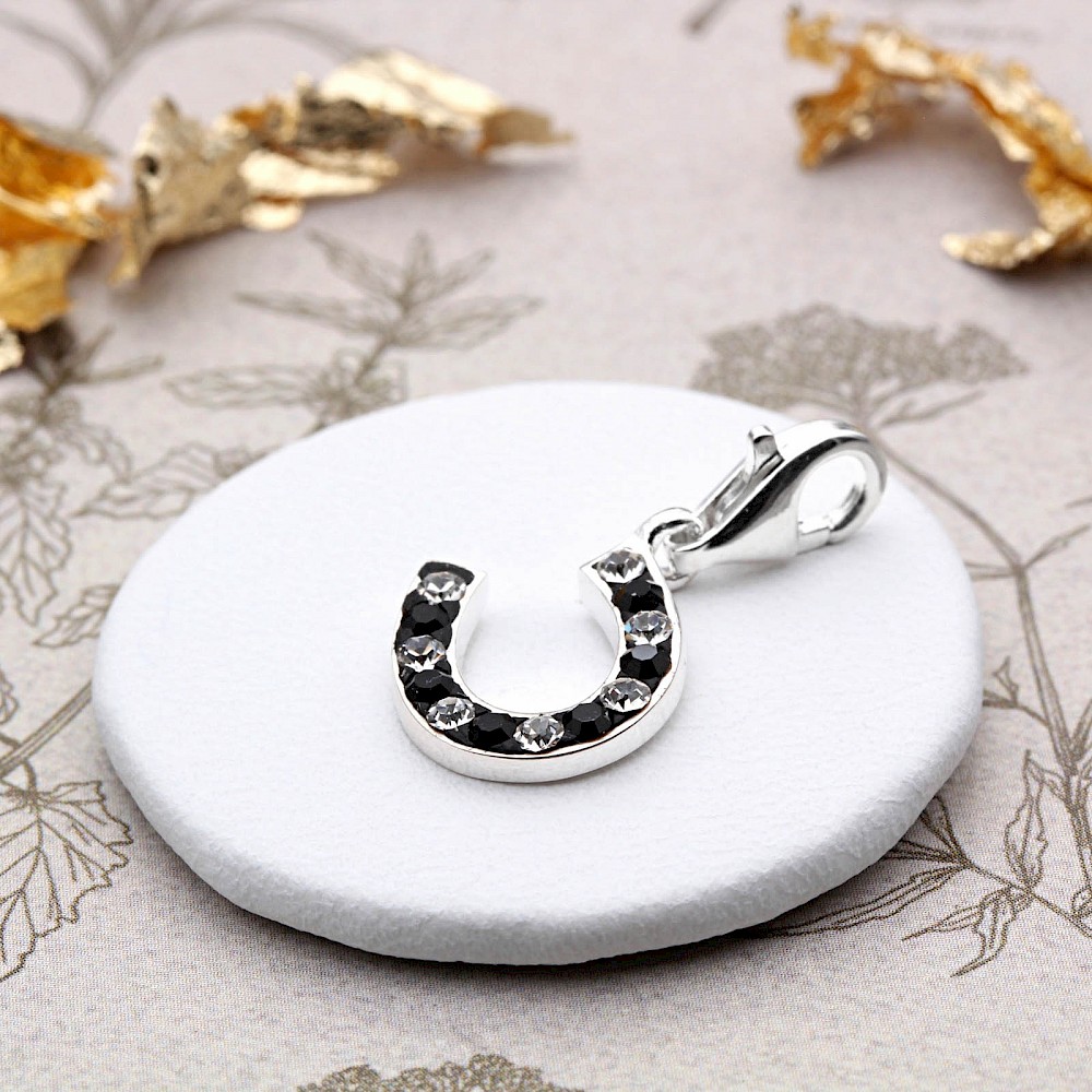 This dainty Sterling Silver and cubic zirconia hook on charm could be the one to bring you luck.