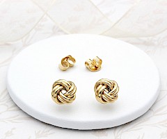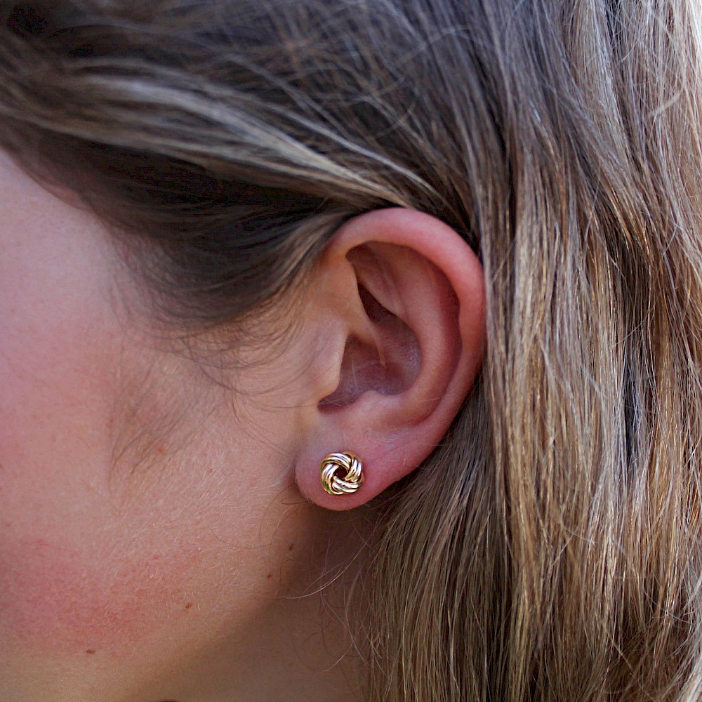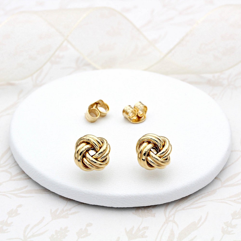 Traditional golden knot ear studs. Ever-fashionable and crafted in 18ct Gold vermeil, ideal for day or evening wear.