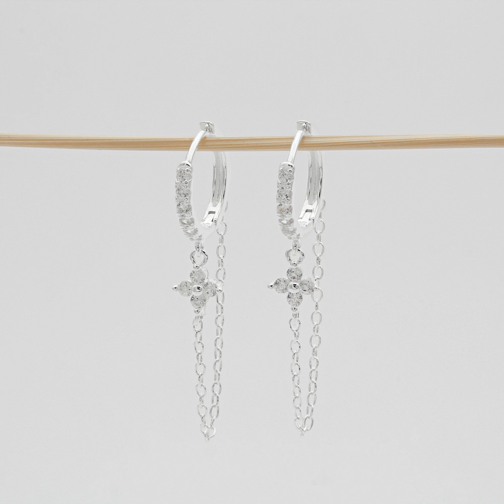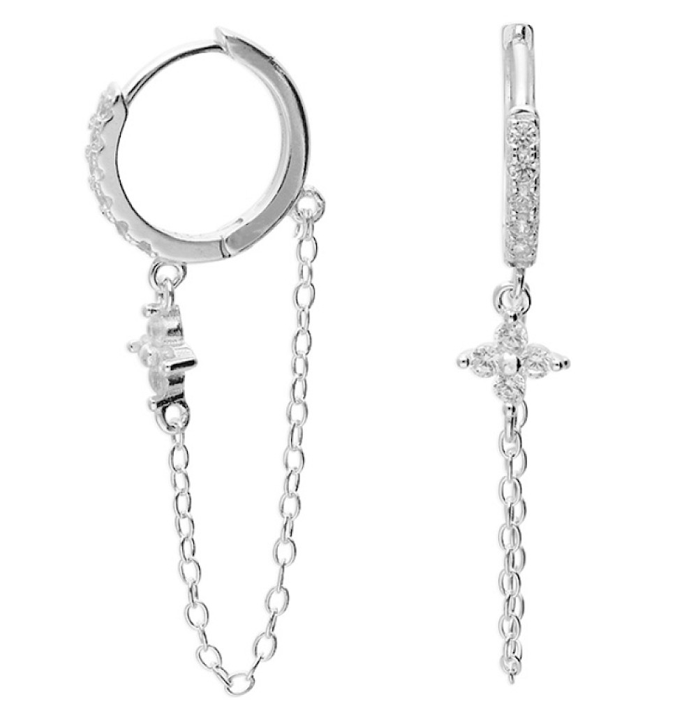 These popular designed sparkly hoop earrings are sure to become one of your favourites. Beautifully crafted in Sterling Silver and enhanced with cubic zirconia stones for that extra sparkle.