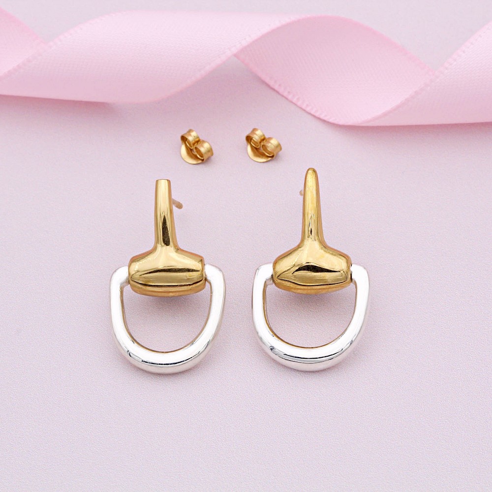 These large half snaffle ear studs are a great choice if you like your jewellery bold. Beautiful quality studs crafted in Sterling Silver and 18ct Gold vermeil guaranteed to get noticed.