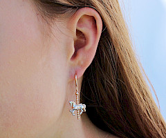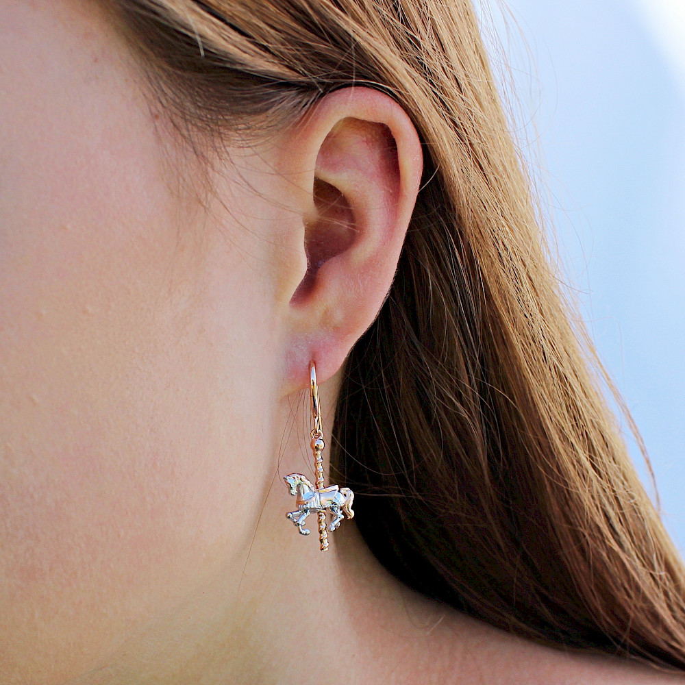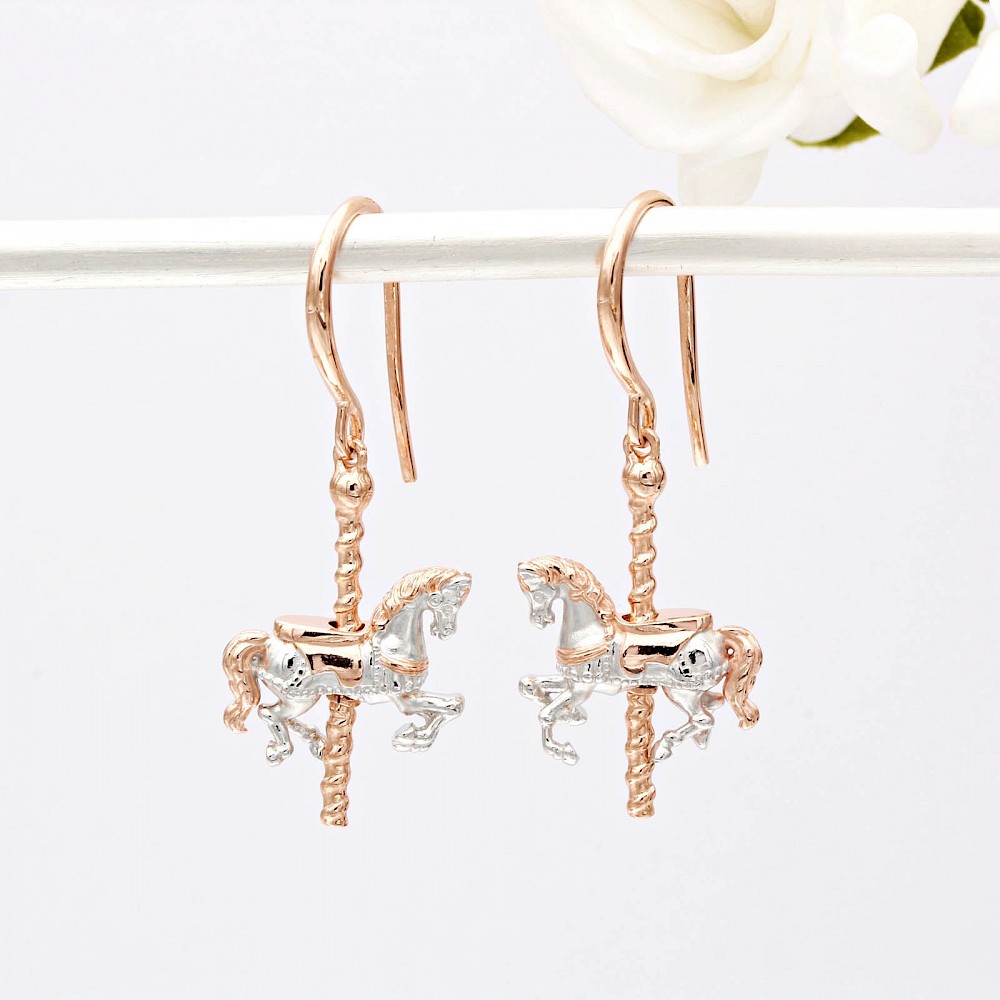 Intricately crafted these magical two-tone carousel horses are sure to be popular not only with equestrian enthusiasts. The modern twist of added 18ct Rose Gold vermeil makes these Sterling Silver drops certainly stand out in a crowd.