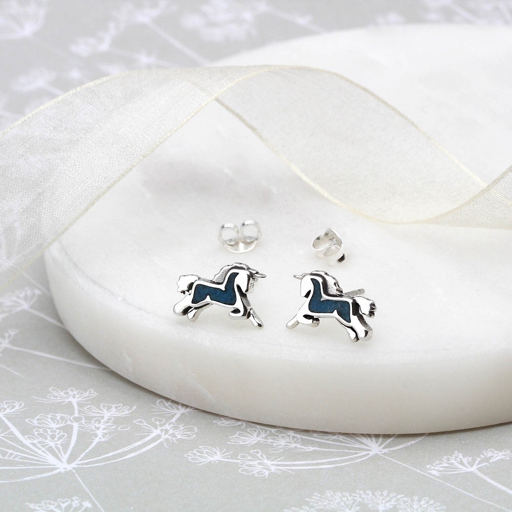 Enchanting Unicorn ear studs created with turquoise and Sterling Silver make an ideal addition to any equestrian outfit.
