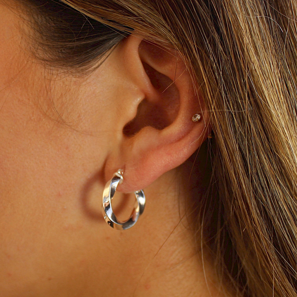 A stylish highly polished hoop earring suitable for all occasions. Easy to fit and timeless in fashion these smart earrings are sure to be among your favourites.