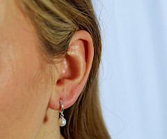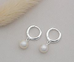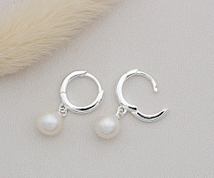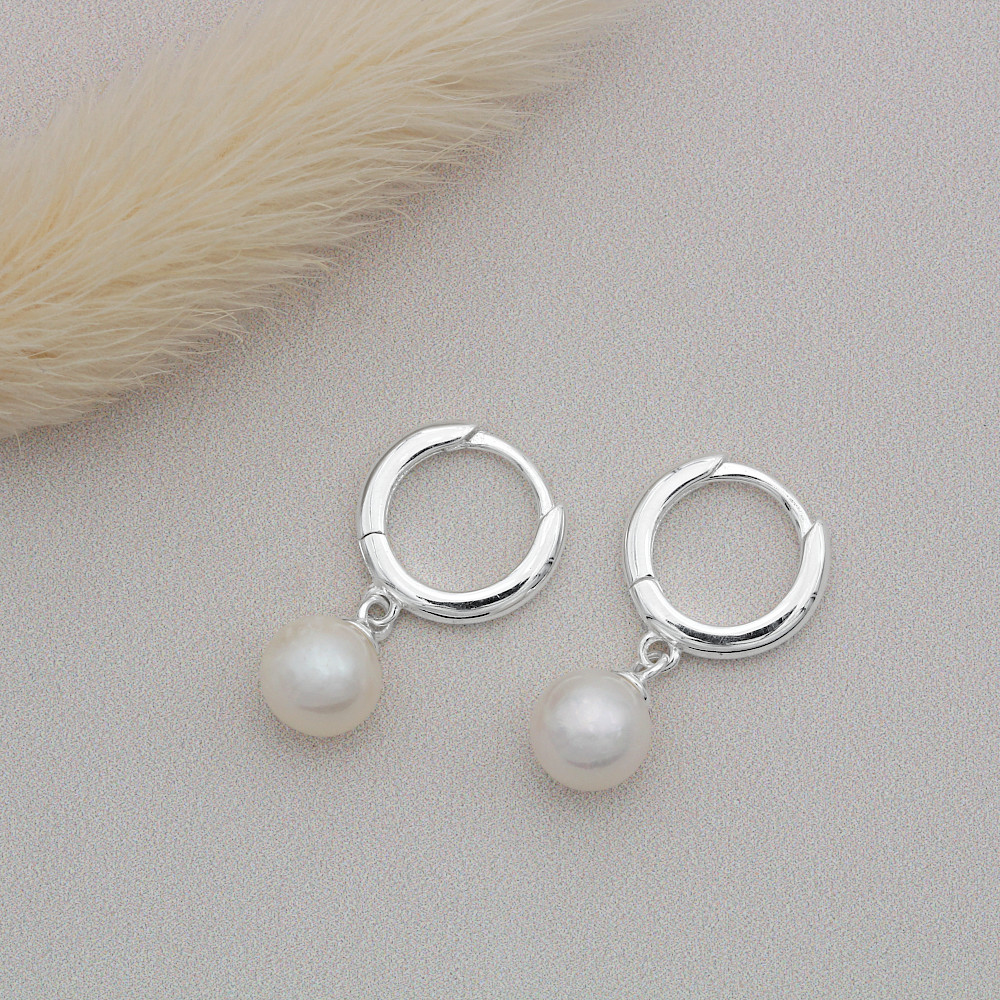 A small plain silver huggie hoop complemented with a quality freshwater pearl.