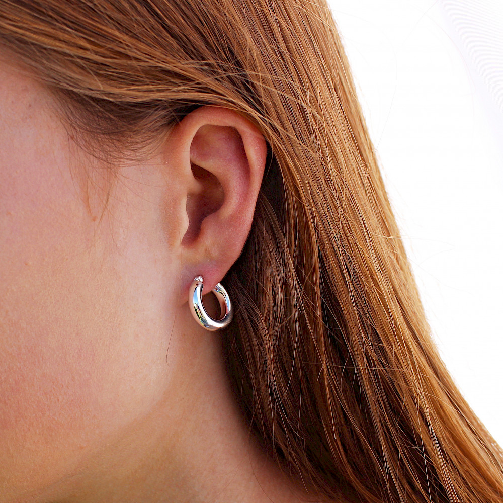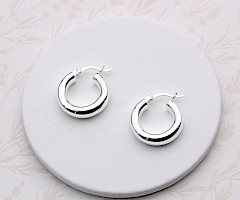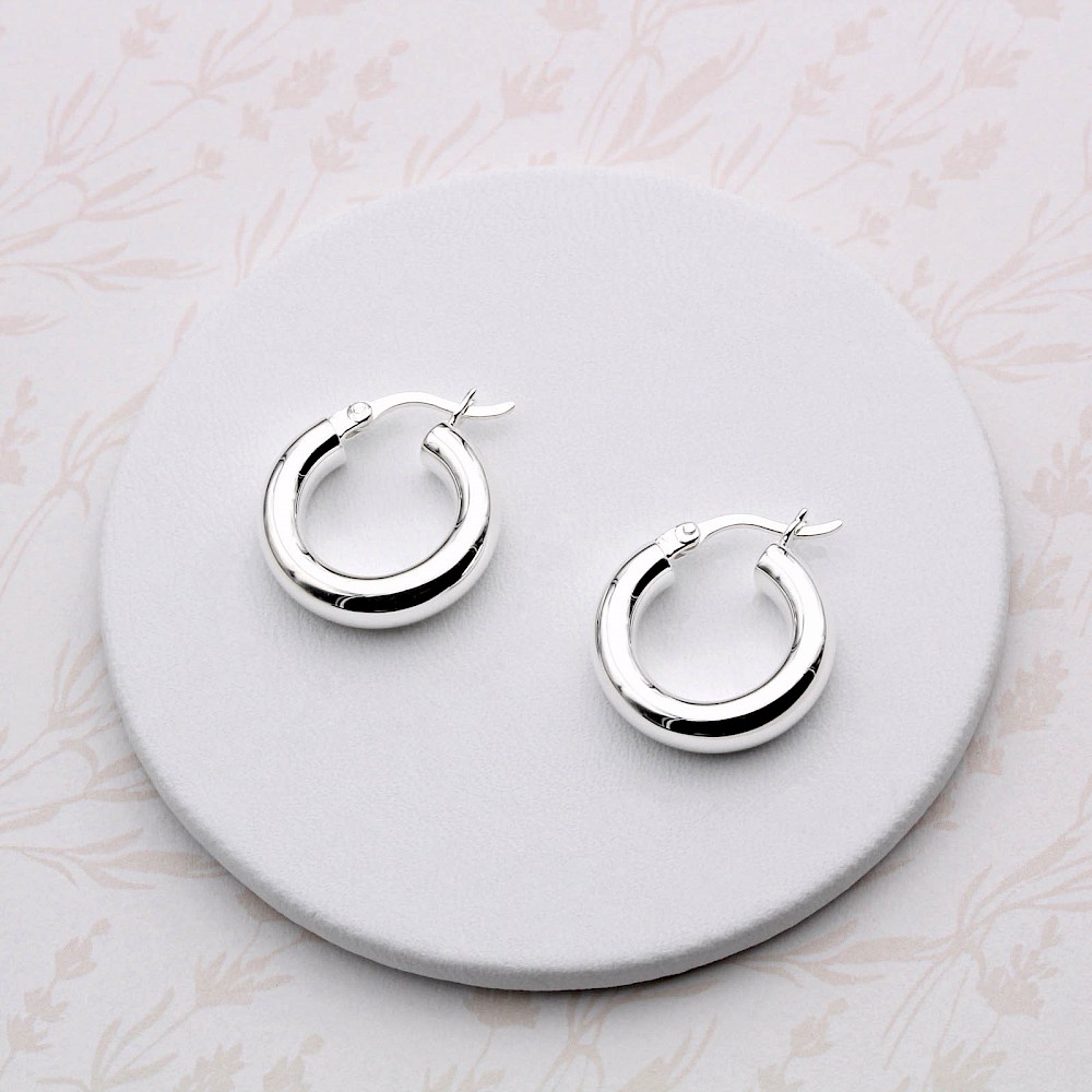 Highly polished plain creole style hoops crafted in Sterling Silver. Small but chunky these hoop earrings make an ideal accessory to any outfit.