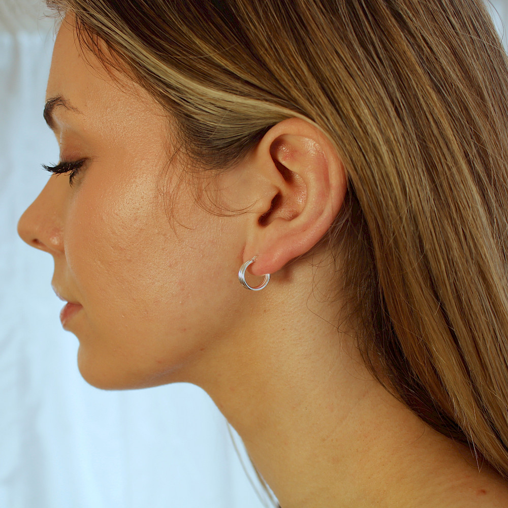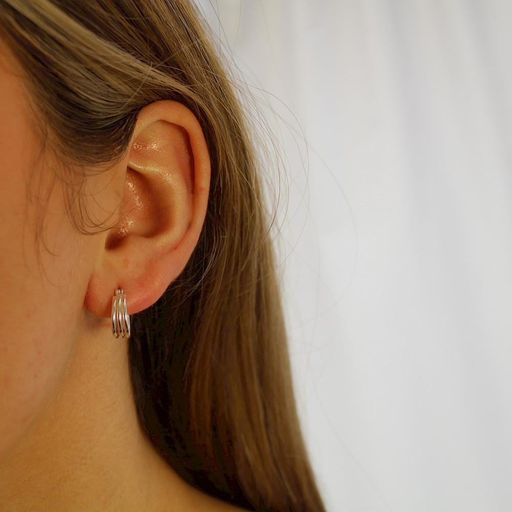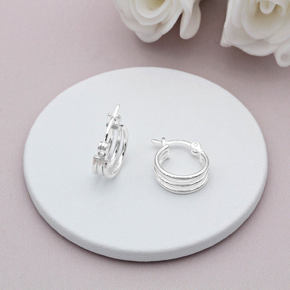 Small three row Creole hoop earrings created in Sterling Silver and perfect for everyday wear.
