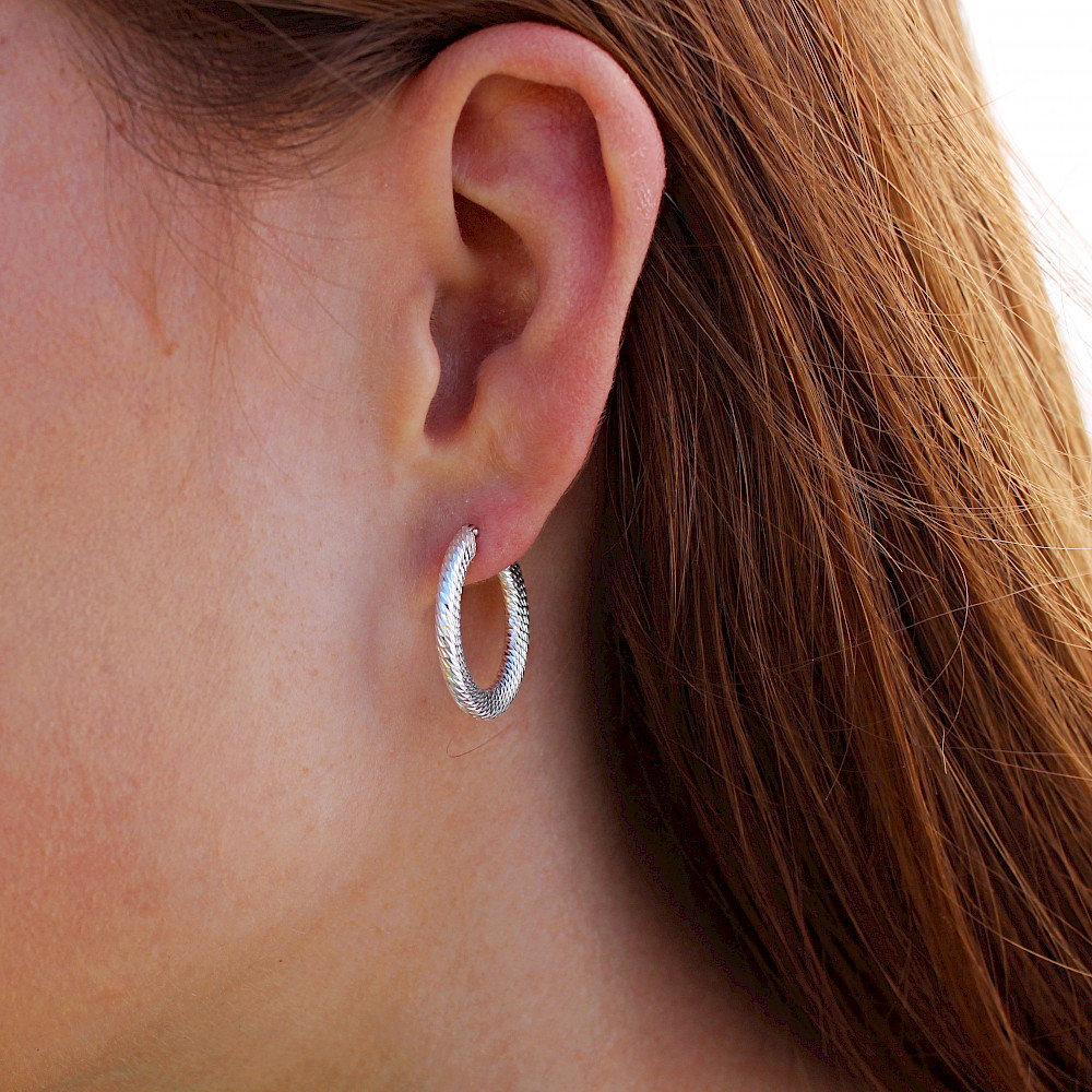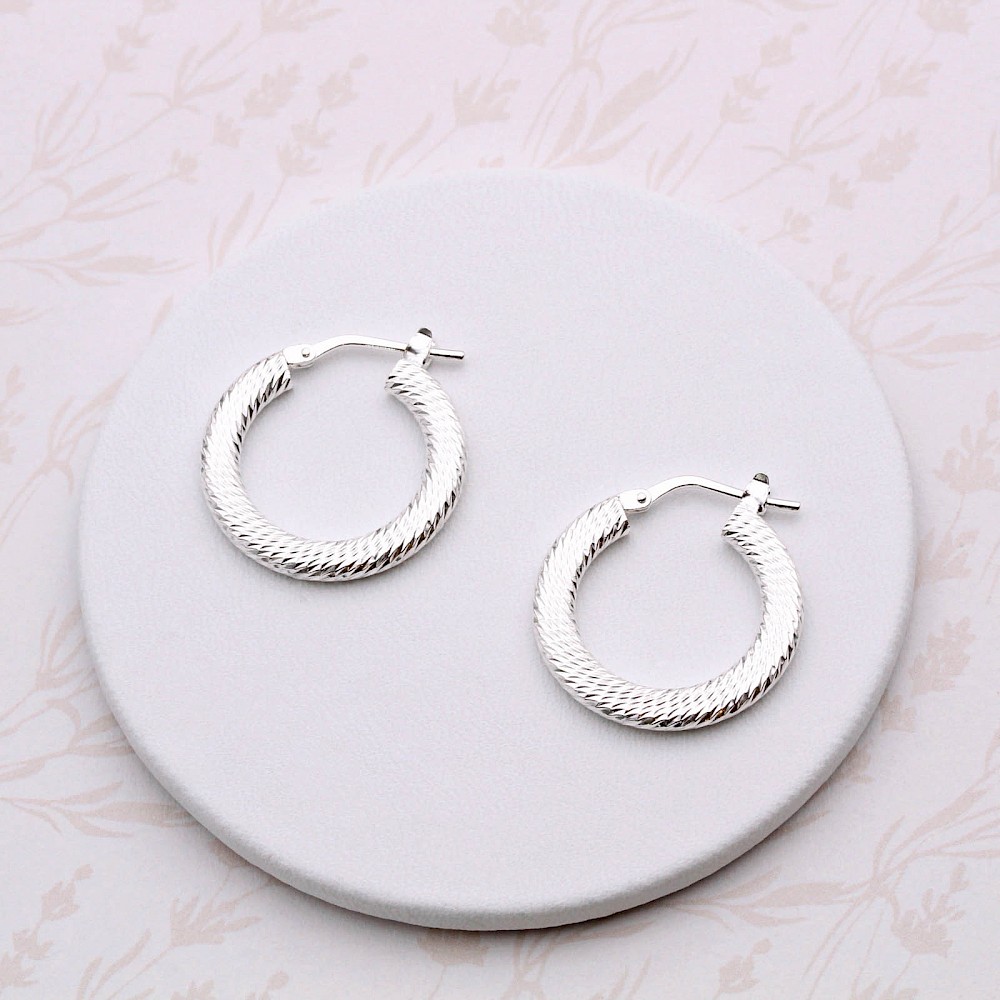 Patterned creole style hoop earrings, crafted in Sterling Silver makes them a perfect gift for a friend or loved one. Alternatively, these delightful hoops would be a lovely little treat for yourself.