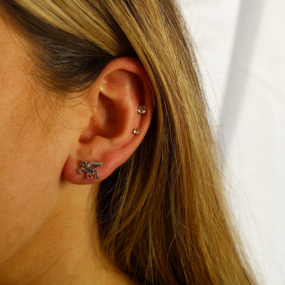 Wonderfully crafted in Sterling silver these neat little Pegasus ear studs are sure to bring a smile to the lucky recipient.