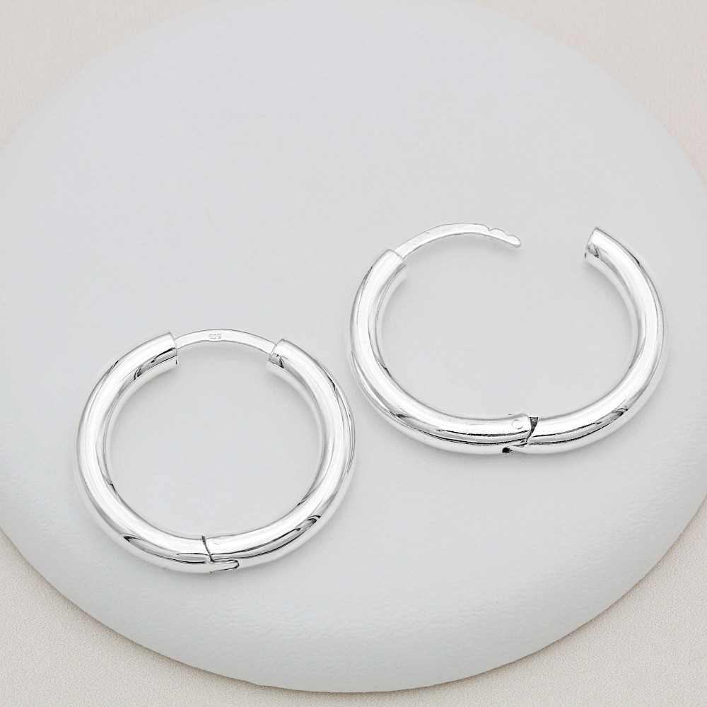 Elevate your everyday style with these classic Sterling silver hoops. Crafted from high quality Sterling silver, these sleek and polished hoops offer a minimalist yet sophisticated look that complements any outfit. Their lightweight design ensures all-day comfort, making them a versatile accessory for both casual and formal occasions.