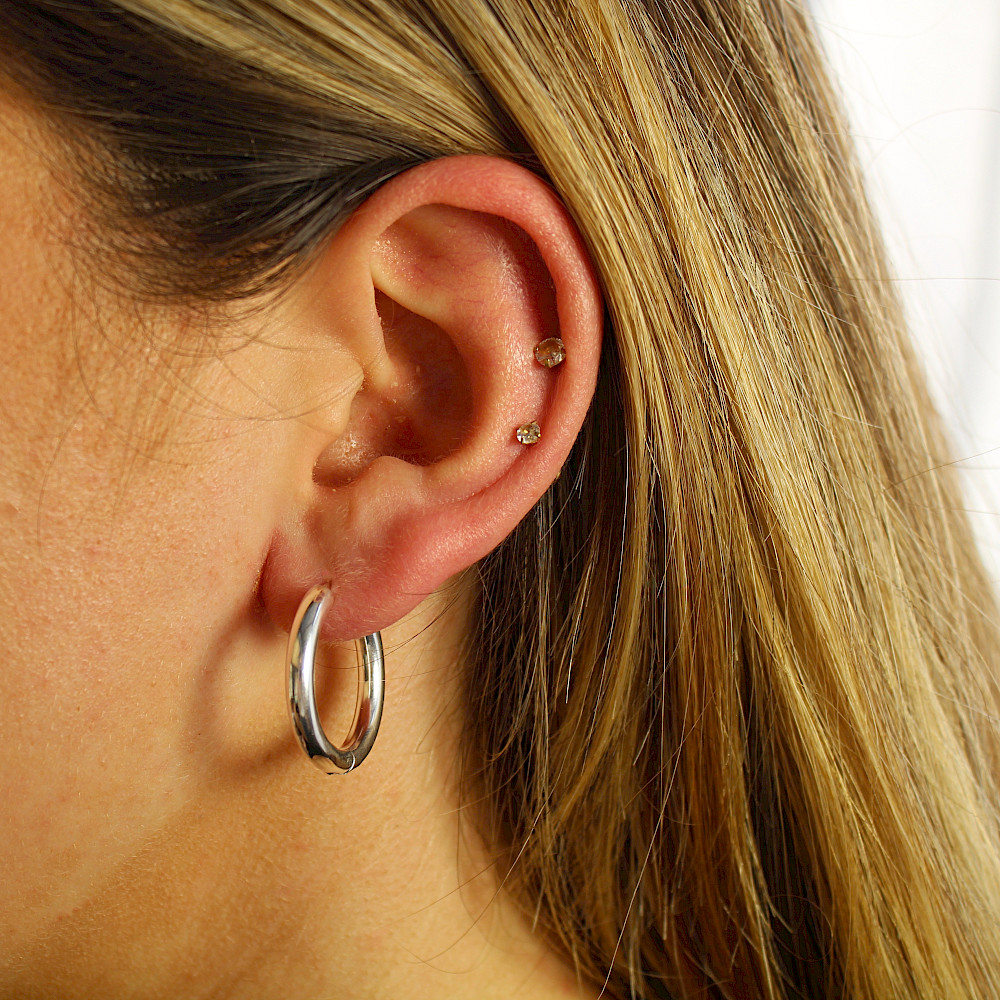 The seamless hinge closure provides a secure and effortless fit, while the high-shine finish adds a touch of elegance. Whether worn alone for a sleek statement or paired with other earrings for a trendy stacked look, these hoops are a must-have staple in any jeweliery collection.