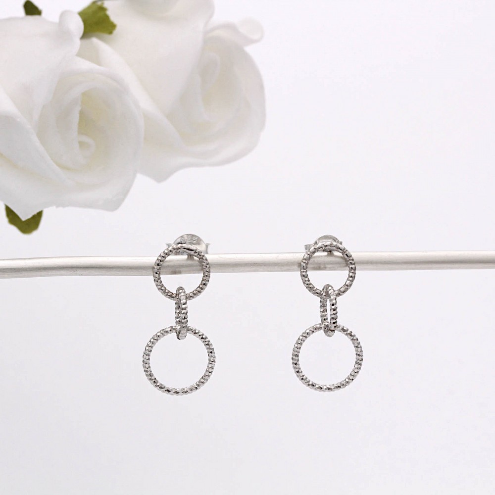 Delightful Sterling Silver Treble Ring drop earrings, cleverly diamond cut to glisten and catch the light.