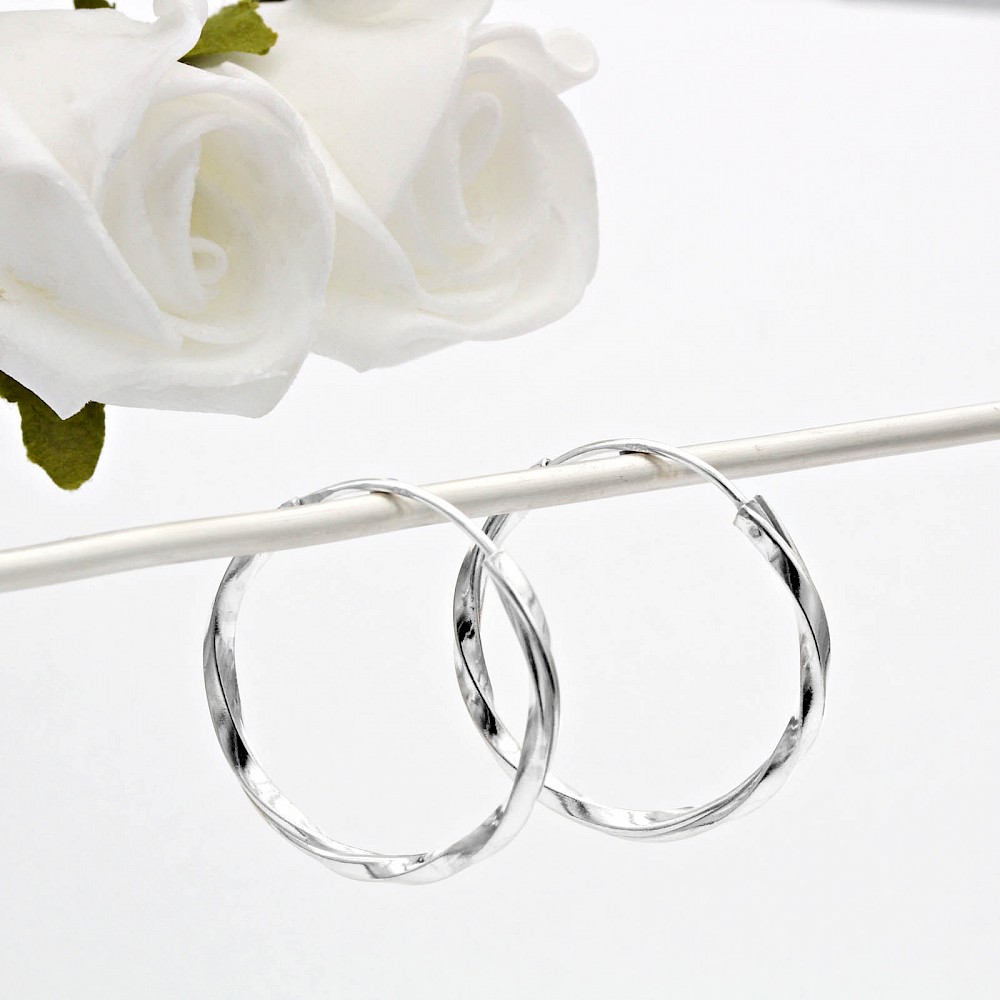 Sleeper style hoops with a subtle twist. These medium-size Sterling Silver hoops are a timeless classic and likely to become one of your favourites.