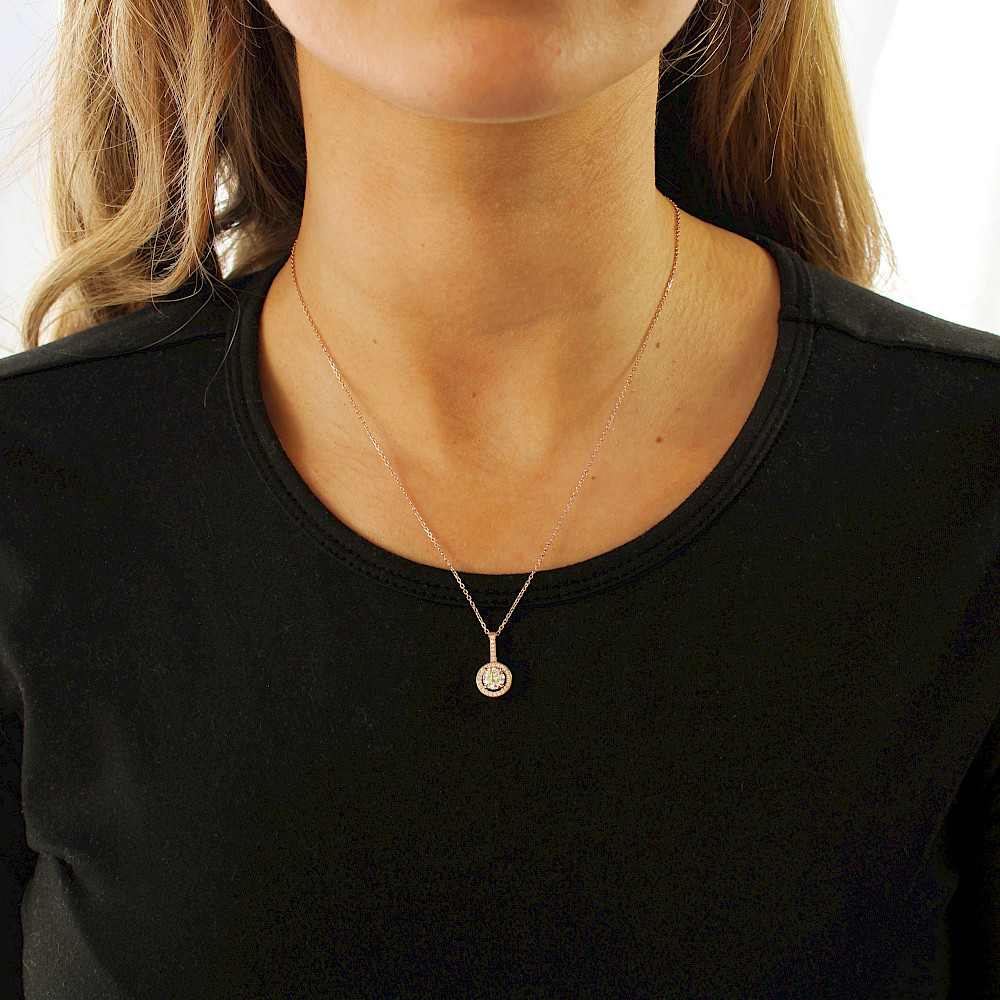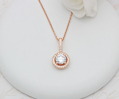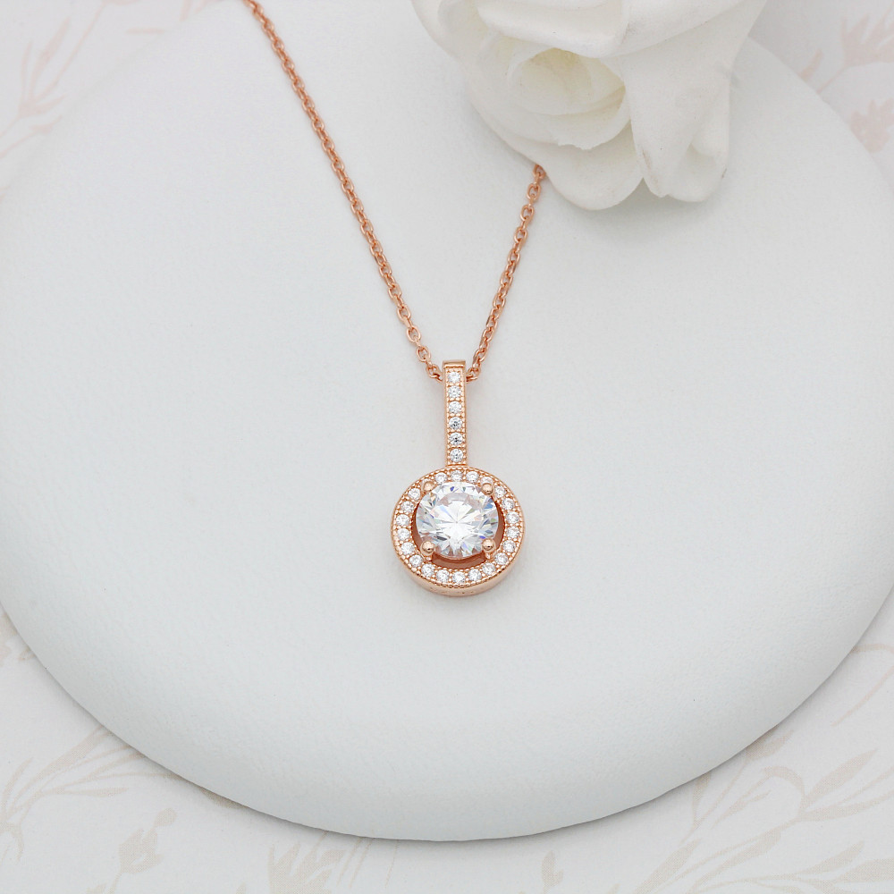 Vibrant brilliant-cut cubic zirconia set in 18ct Rose Gold vermeil is certain to catch the eye. Enhanced with dozens of micro-set cubic zirconias will bring a little sparkle to your life. Complete with a strong and secure 18ct Rose Gold curb chain. Matching earrings available. Also available in Sterling Silver.