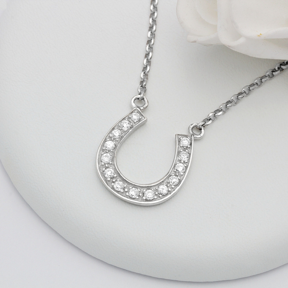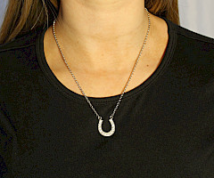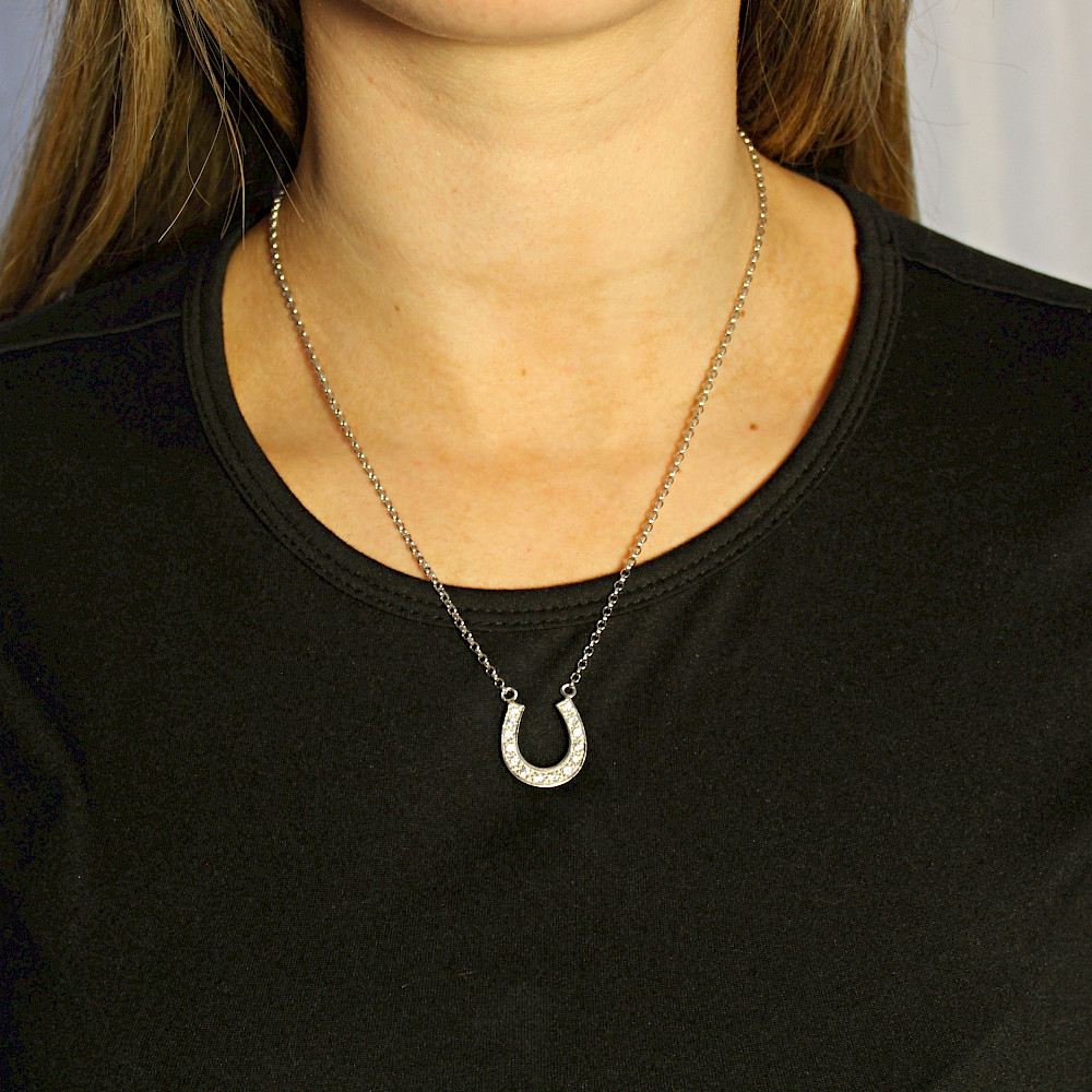 A large nicely shaped horseshoe necklace full of sparkle. Matching bracelet, earrings available.