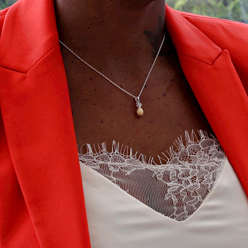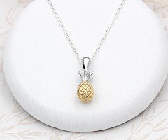Cute little two-tone Pineapple necklace popular with all ages. Sterling Silver and 18ct Gold vermeil makes this sweet Pineapple look so realistic. Matching earrings available.