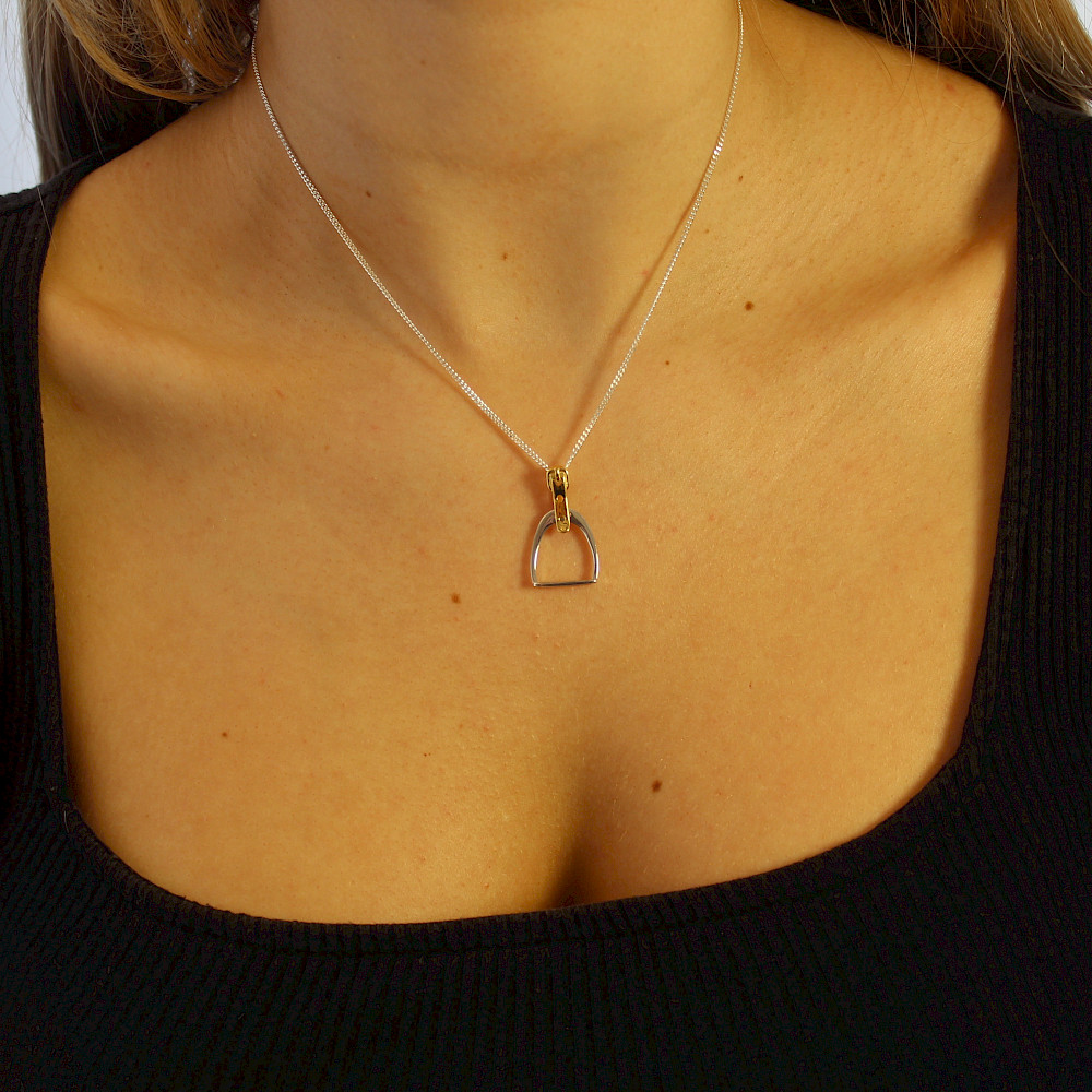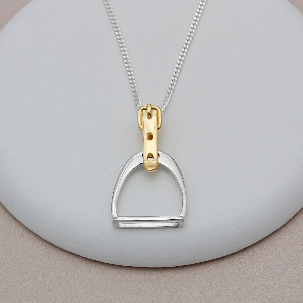 Gorgeous Stirrup and Buckle necklace created in Sterling Silver and enhanced with 18ct Gold Vermeil, this wonderfully crafted necklace is sure to be admired. A lovely gift or treat for yourself. Matching earrings are available.