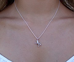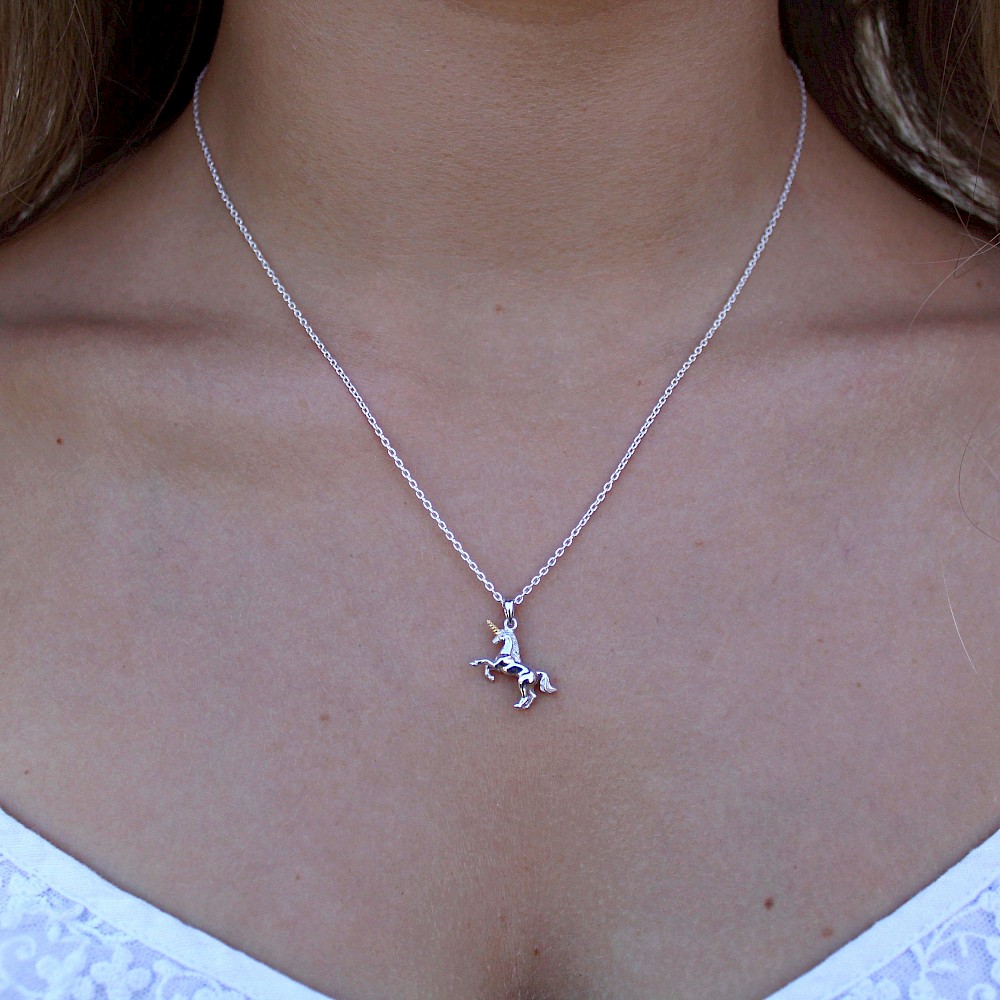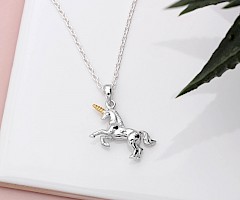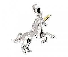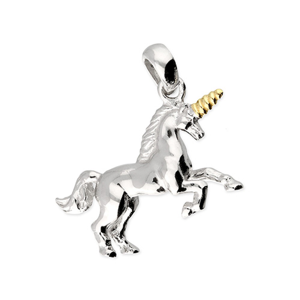 A mythical Unicorn necklace crafted in Sterling Silver and 18ct Gold Vermeil. An ideal gift for a friend or loved one. Matching earrings and charm available.