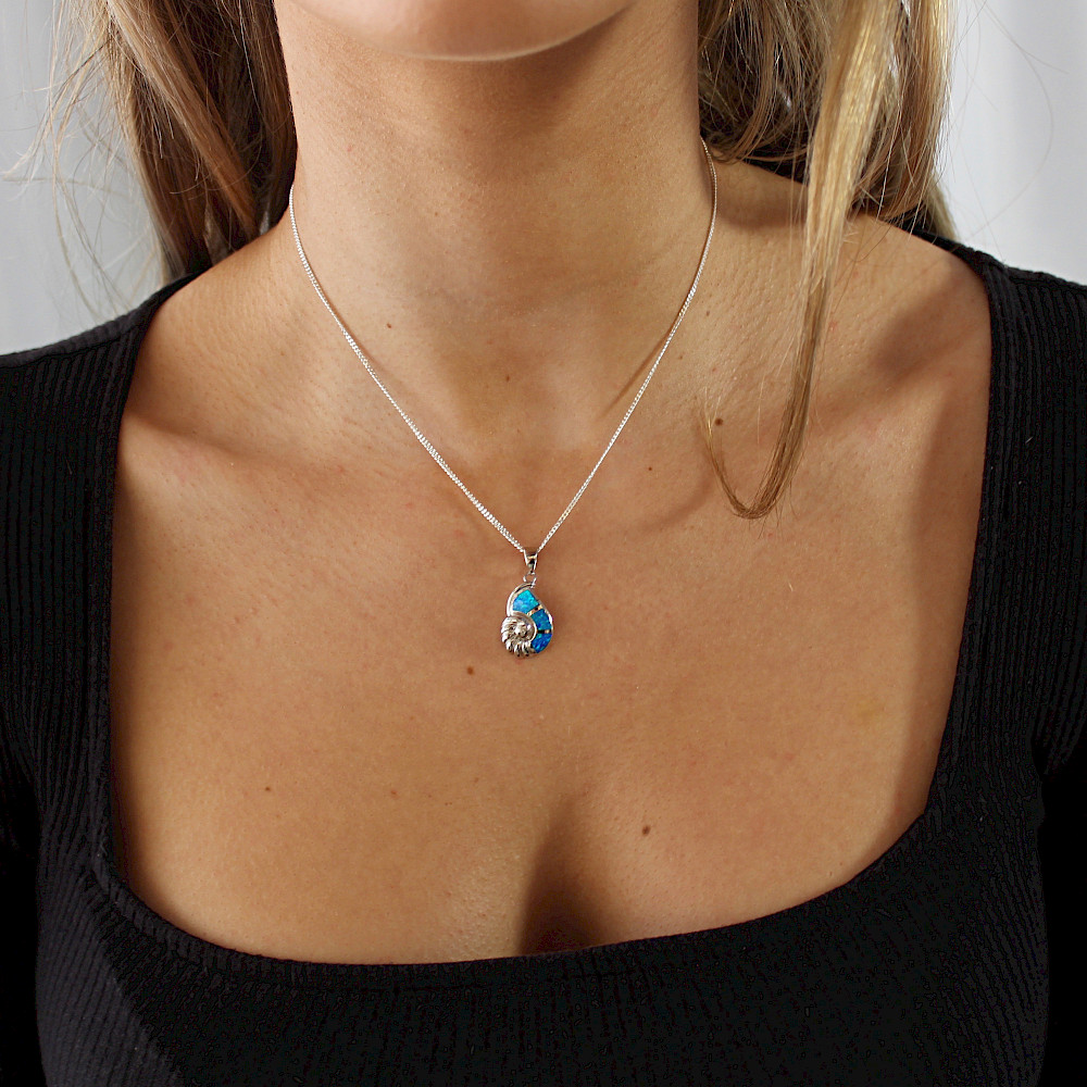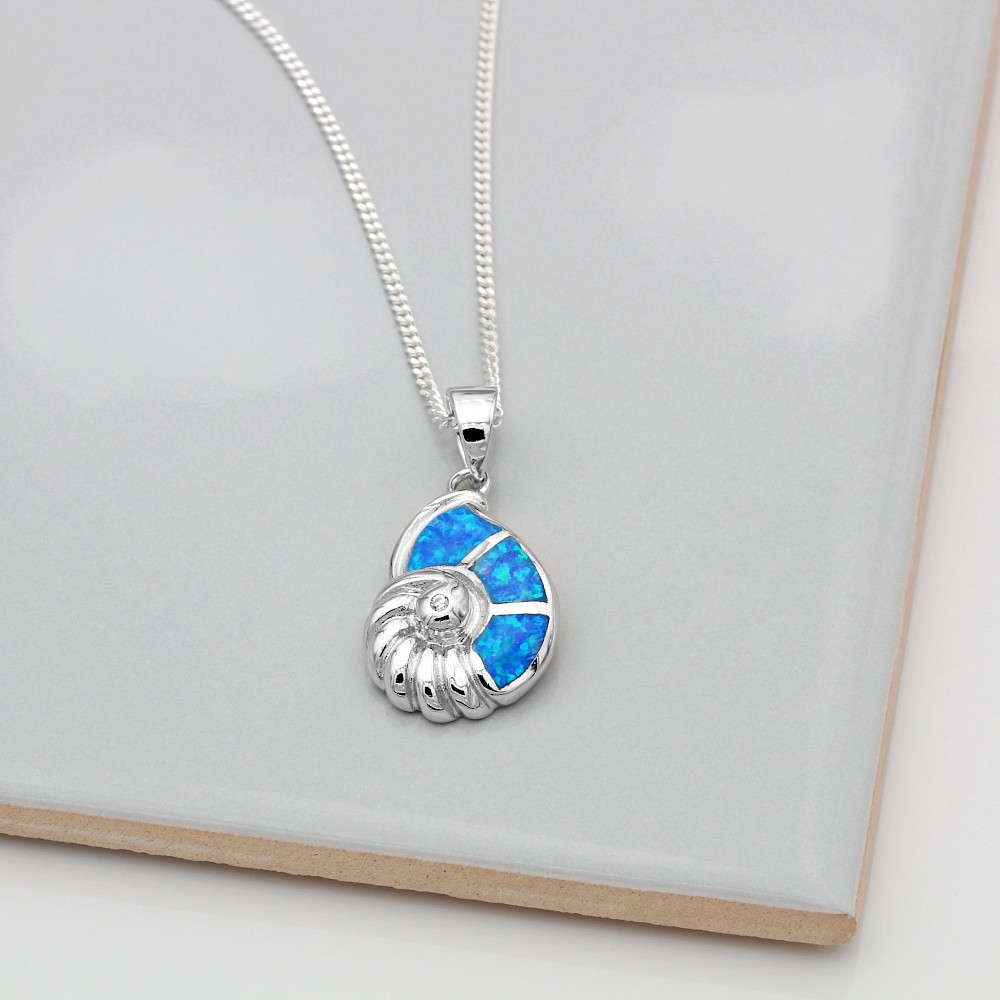 If you're keen on your marine life then this unusual Nautilus necklace could be for you. A creation from laboratory created Opals and Sterling Silver, this ocean-going friend will no doubt draw attention your way.