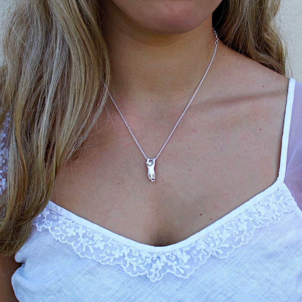 This adorable playful Kitten will have you jumping for joy. Created in Sterling Silver this swinging Cat necklace could be the one you fall in love with.