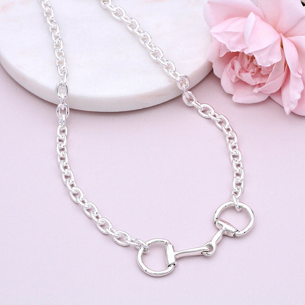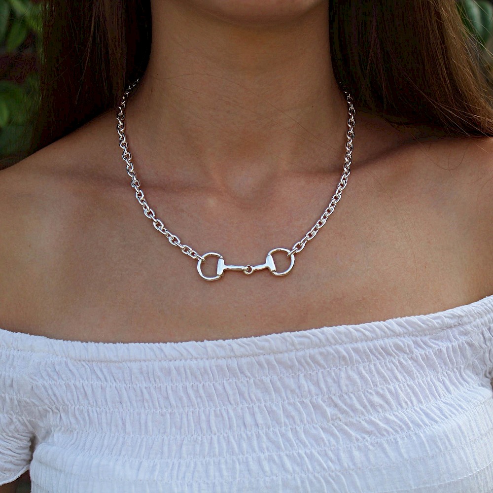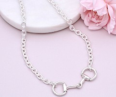 A perfect size Eggbutt Snaffle Necklace on a smooth brightly polished oval link chain. This gorgeous piece is an ideal accessory to any outfit. Matching rings, bangles and earrings available.