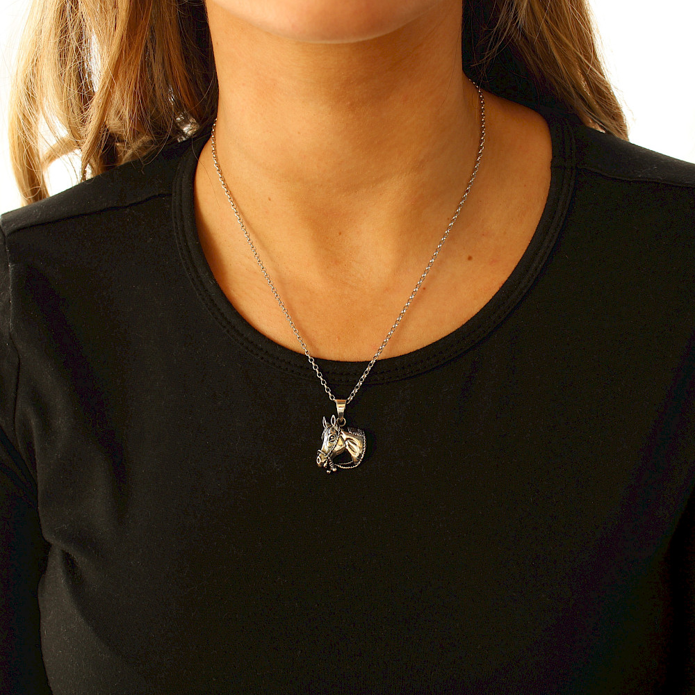 Beautifully crafted and highly polished this realistic Horsehead necklace is sure to be popular with all equestrian enthusiasts.