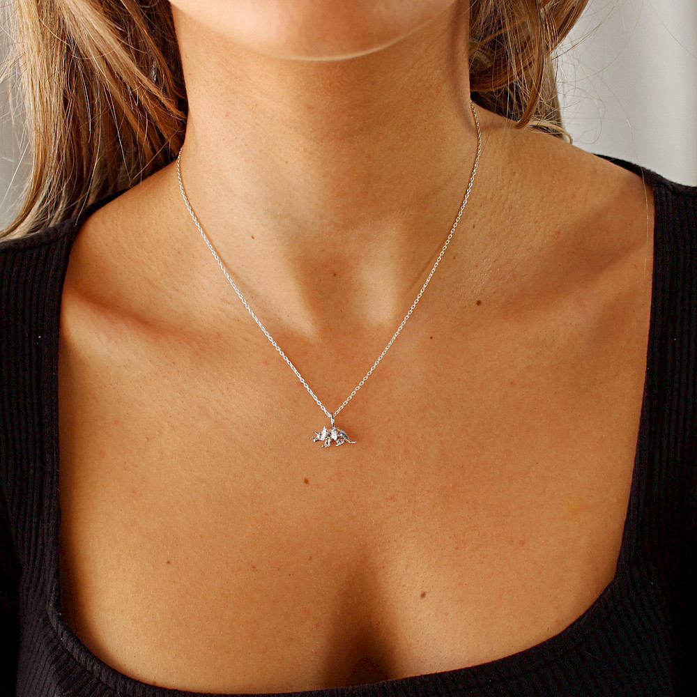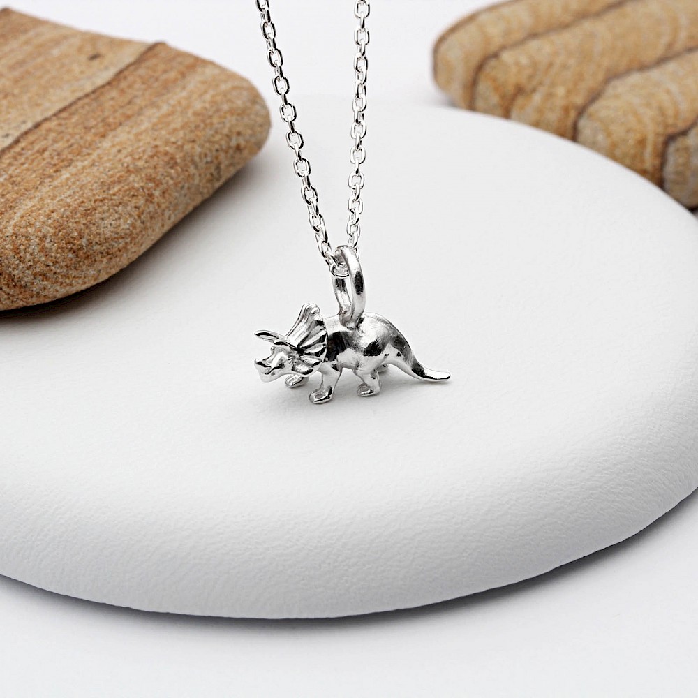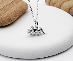 This little darling Dinosaur necklace created in Sterling Silver is popular with all ages. This prehistoric Triceratops is sure to be a long term favourite.